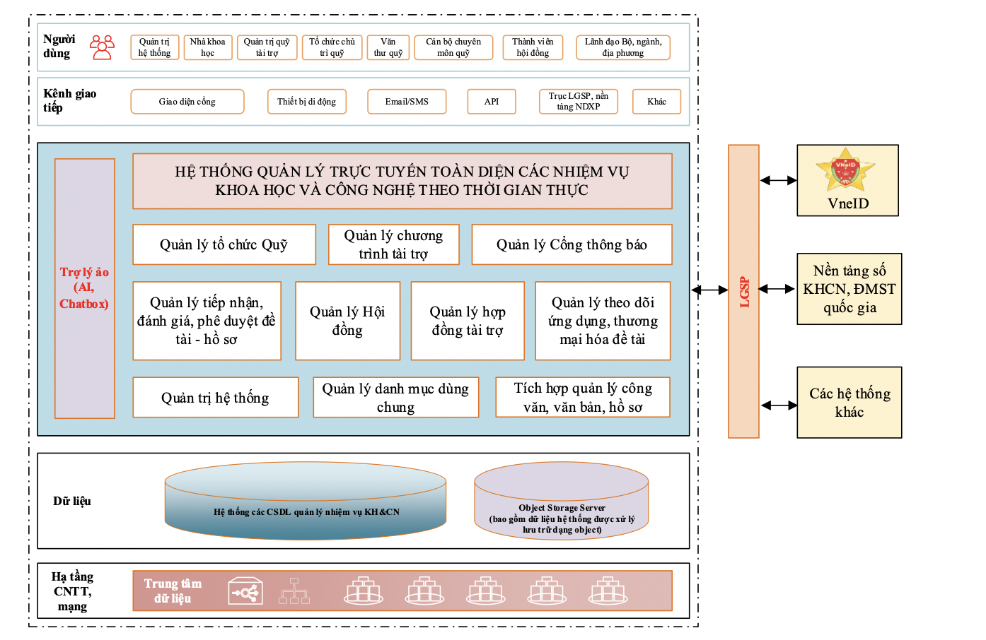 – Sẵn sàng tích hợp, liên thống với nền tảng số quản lý khoa học công nghệ và đổi mới sáng tạo quốc gia.